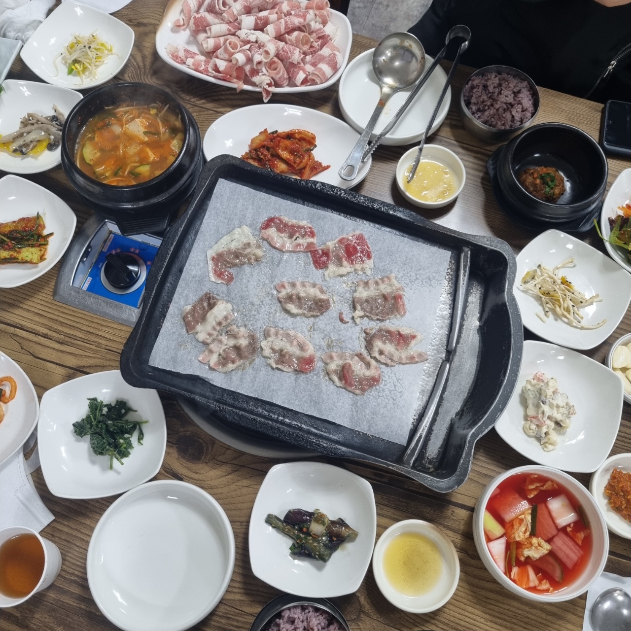 이날 우삼겹 쌈밥 2인(총 30,000원)을 먹었는데 아무리 서서 찍어도 반찬이 다 안찍혀요...