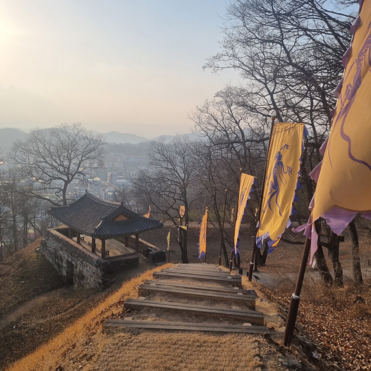 해가 지기 전 풍경이 너무 멋지더라구요. 옛날 감성 깃발 무엇..